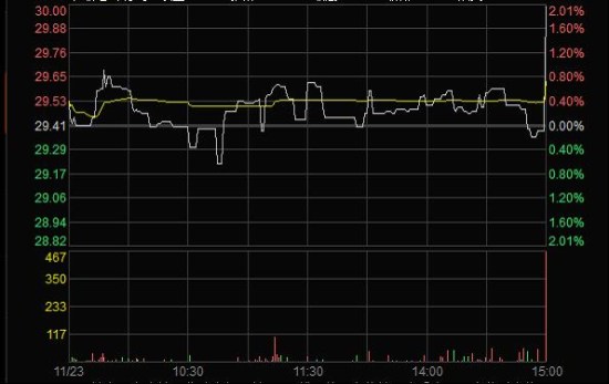 2011年11月23日臨近收盤期間(14:56:24至14:59:28),任某某為了在短期內(nèi)拉升股價,大量申報買入“X”4筆共計63,000股,占尾市階段市場申買量的比例高達75.54%;委托價格由29.60元升至32.00元,每筆均高于當時市場上的買1檔價格,三分鐘內(nèi)將股價由29.35元拉升至30元收盤,拉升幅度達2.21%。(見下圖)