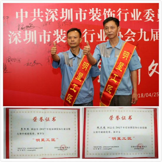 日前,深圳市方大建科集團有限公司員工李紅林、魏正培,憑借過硬的技術、精湛的工藝,在深圳市裝飾行業明星工匠評選活動中脫穎而出,榮獲“明星工匠”稱號。