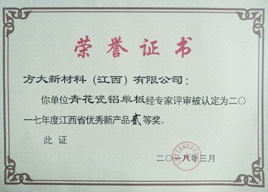 近日,江西省工信委在全省工業(yè)和信息化技術(shù)創(chuàng)新工作會(huì)公布了2017年度優(yōu)秀新產(chǎn)品獲獎(jiǎng)名單,方大集團(tuán)全資子公司方大新材料(江西)有限公司的“青花瓷鋁單板”、“自由曲面鋁合金遮陽(yáng)板”兩項(xiàng)新產(chǎn)品獲得了2017年江西省優(yōu)秀新產(chǎn)品二等獎(jiǎng)。