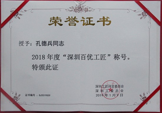 為促進(jìn)深圳市技能人才隊(duì)伍建設(shè),培養(yǎng)深圳工匠群體,弘揚(yáng)崇尚技能、尊重人才的深圳工匠精神,深圳工業(yè)總會(huì)組織開展第三屆“深圳百優(yōu)工匠”評(píng)選活動(dòng)。方大智創(chuàng)科技員工歐陽科華、朱振飛、孔德兵在技術(shù)創(chuàng)新、攻克技術(shù)難關(guān)、傳承傳統(tǒng)工藝等方面做出較大成績,具有良好的職業(yè)道德和敬業(yè)精神,并在公司里產(chǎn)生良好經(jīng)濟(jì)社會(huì)效益和示范作用。他們不僅在企業(yè)充分證明了他們的價(jià)值,此次獲得的殊榮更表明他們得到行業(yè)的尊敬和認(rèn)可。